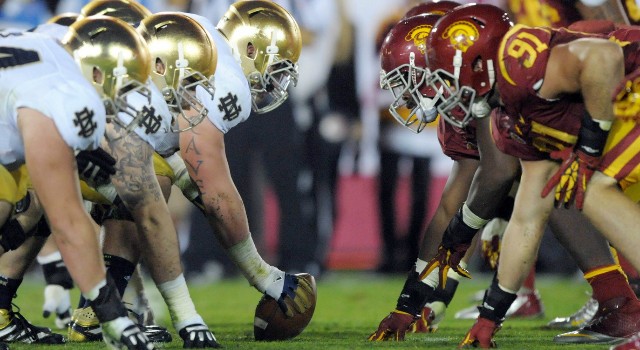 This coming Saturday at 7:30pm ET, the #13 Notre Dame Fighting Irish (5-1) will square off against the #11 USC Trojans (6-1) in front of roughly 78,000 at the Mecca of college football that is Notre Dame Stadium in South Bend, Indiana in what is set to be one of college football’s biggest showdowns of the year. Winning 3 of the past 5 meetings dating back to 2012, the Irish enter Saturday’s contest as a 4 point favorite (Vegas Insider) and have a 46-37-5 all time advantage over their bitter arch rivals. The stakes are high as a loss for either team will likely extinguish any glimmer of hope for a playoff berth while a win could catapult the victor into true contention. With such meaningful implications, we might be in for similar dramatics as the 2005 matchup in which the top ranked Trojans and Coach Pete, “the energetic poodle,” Carroll defeated the #9 Irish 34-31 following the infamous “Bush Push” on the goal line in the closing seconds. Prior to “the Push,” quarterback Matt Leinart had fumbled the ball out of bounds as time expired causing Irish fans to storm the field only to be returned to their seats for one more play. With 7 seconds to go, Leinart performed a quarterback sneak in which he was pushed forward into the endzone by running back Reggie Bush. The legality of the push was in question, but to this day, that controversial play has left a bad taste in Notre Dame fans’ mouths around the country and has heated the rivalry even further.